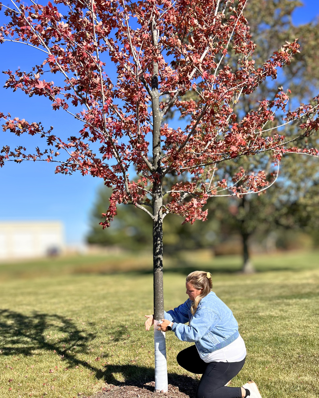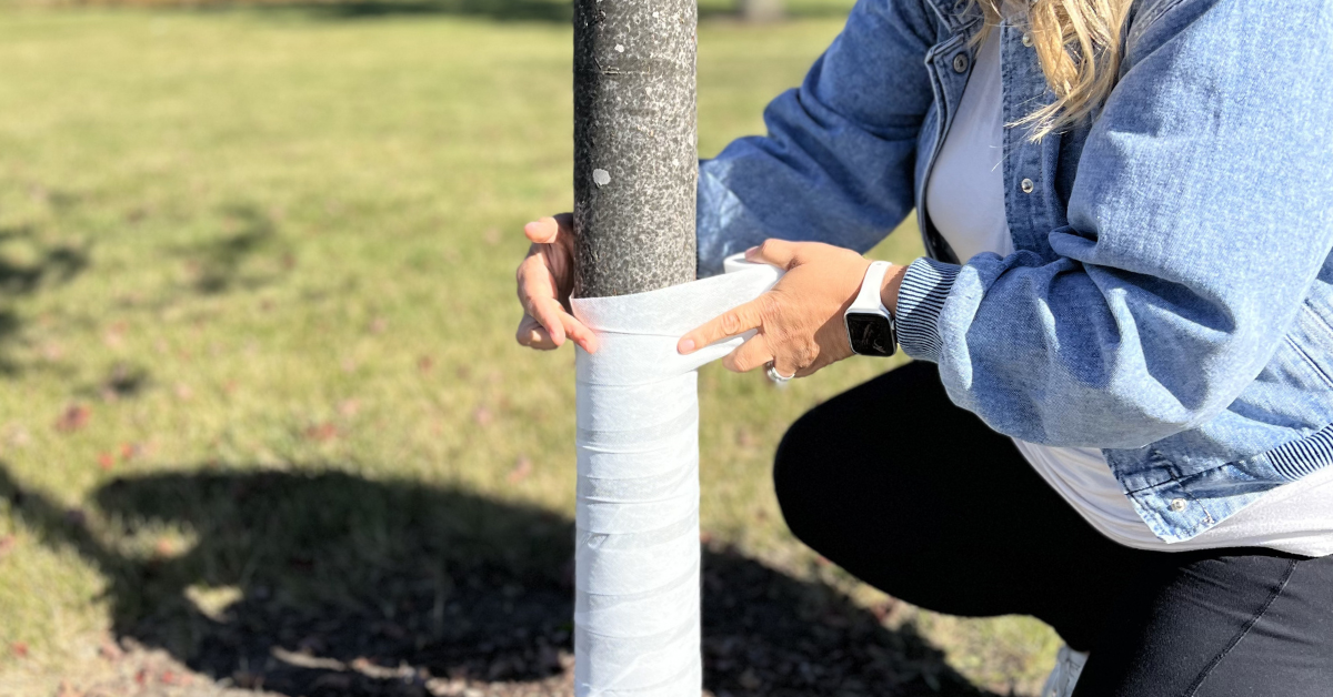 Tree wrap can help protect the tree from frost-crack, sunscald, and animal damage, which can occur in winter.